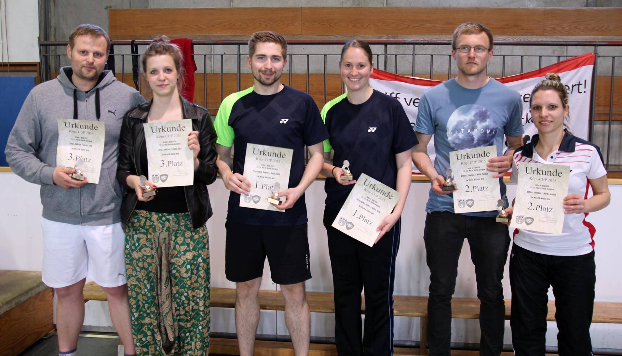 Nach kurzer Eröffnungsrede durch die Turnierleitung startete der Köpi-CUP mit den Damen- und Herrendoppel im Turniermodus des Schweizer Leitersystems. Am Samstag standen 5 Runden für die Doppel auf den Plan. In vielen spannenden Spielen wurde Punkt für Punkt, Satz für Satz auf 11 Feldern in der Halle gekämpft und gegen 19 Uhr standen die ersten Sieger fest.