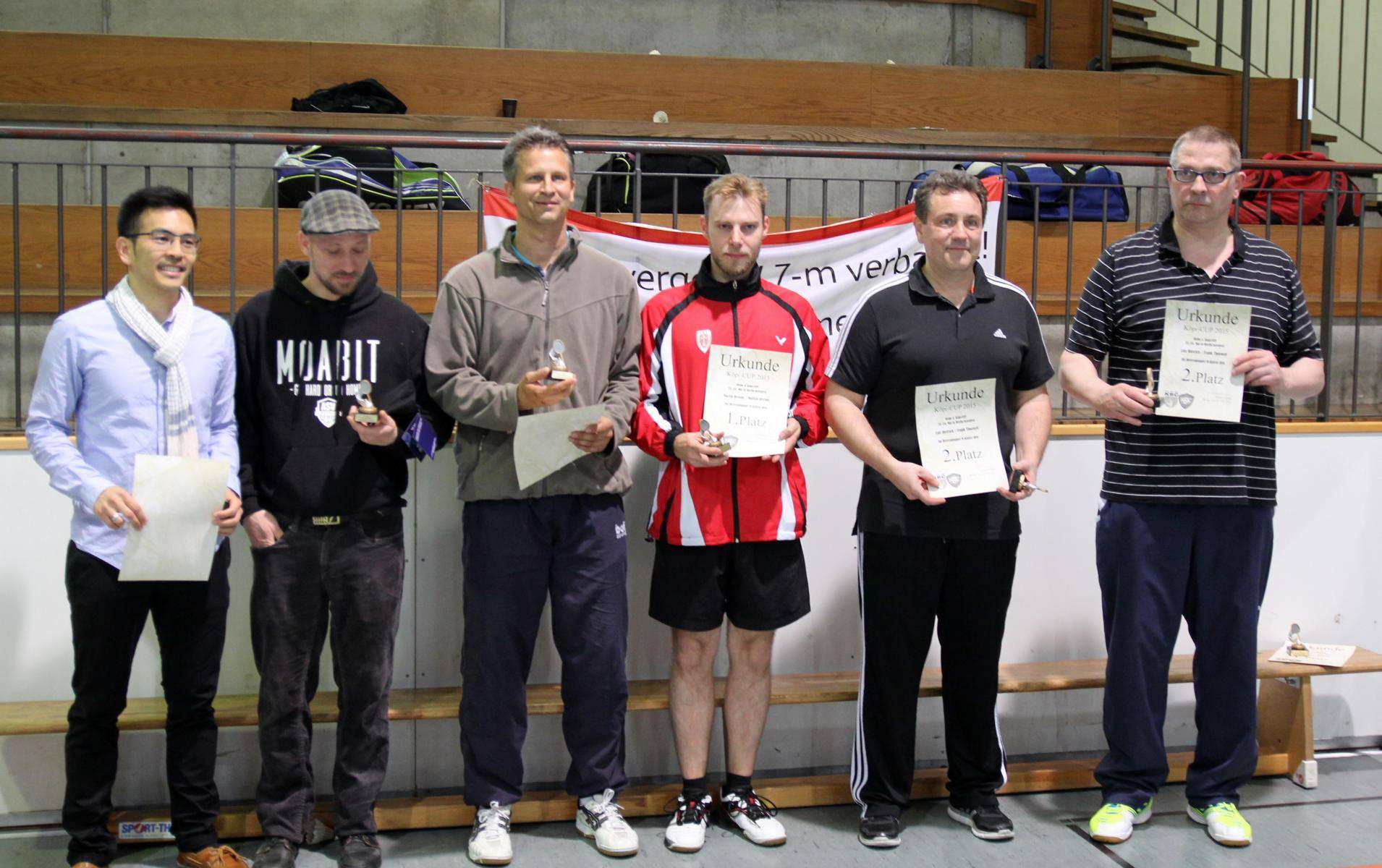 Insbesondere in der C-Klasse war es ein Kopf-an-Kopf-Rennen um die Pokalplätze. Die ersten 4 hatten alle ein Spielverhältnis von 4:1. Ausschlaggebend für Platz 1 war das die Köpenicker Paarung einen Satz weniger verloren hatten als die anderen. Für alle weiteren Plätze mussten sogar die Bälle ausgezählt werden. Aber am Ende kann es nur einen Sieger geben obwohl es alle verdient hätten.